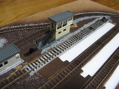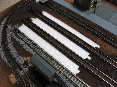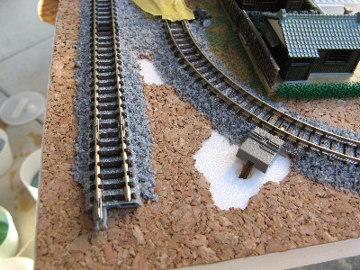 早くも、レイアウトの改修工事をおこなった。レイアウトプランを考えているときから、どうしようかと思い悩んでいた車庫1番線。バラストをまき終わったあとの通電試験をかねた試運転で、やはり車庫1番線に絶縁ギャップが欲しいことを改めて感じた。