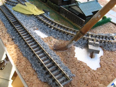 この後ボンド水溶液を垂らしてレイアウトに固定する。