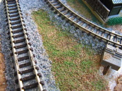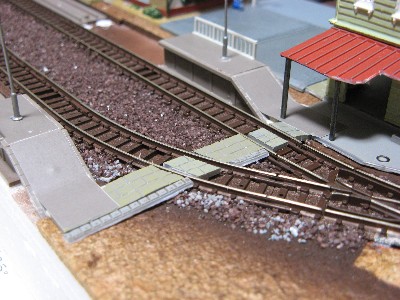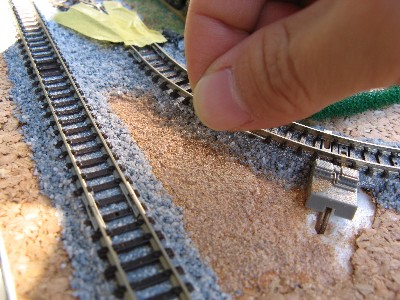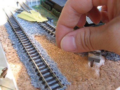なお、絶縁ギャップは左右のレールに作る必要がないので片側だけ作ってある。また、絶縁ギャップの前後のジョイナーからスイッチへいくための配線をだしている。