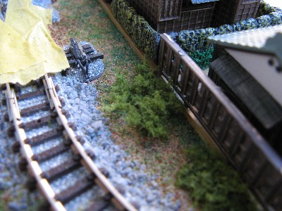 作業工程としては、レールにギャップを作るために車庫1番線のレールをはがさなければならない。そこで、まず作業の邪魔となる車庫を取り外す。その後、ギャップを取り付ける位置を挟んで線路終端部方向のレールを全てはがす。はがした後に、新しく絶縁ギャップを取り付けたールを再配置する。