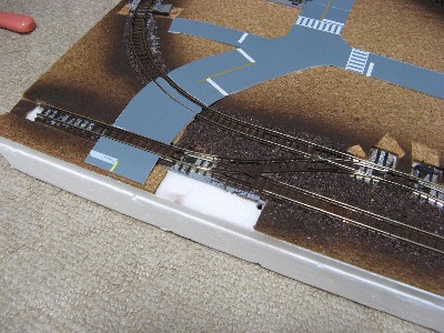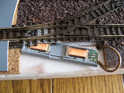 ついでの工事として、支線への分岐部の手動ポイントを電動化するための準備工事を施工した。