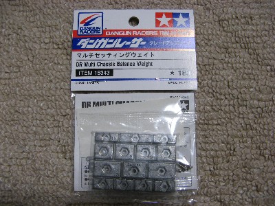 田宮モデルから発売されているミニ四駆用のウエイトである。この中から2グラムのウエイトを使用し、これもゴム系の接着剤で取り付ける。