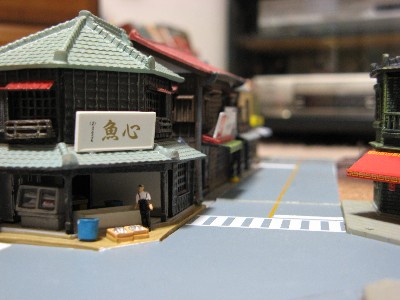 住宅を配置し、交差点に信号機を取り付けて製作作業終了。