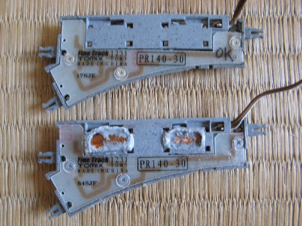 再度、レールをはがしてポイントを取り外して接点の清掃をやり直しです。なんだかんだと時間を費やして通電試験も良好になりました