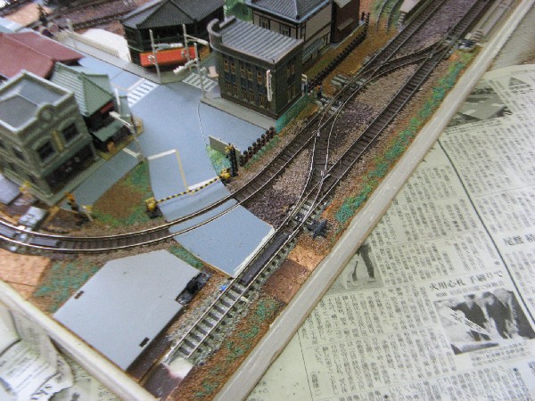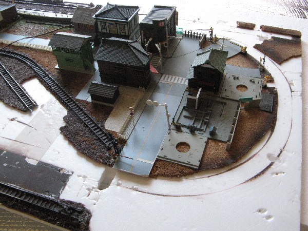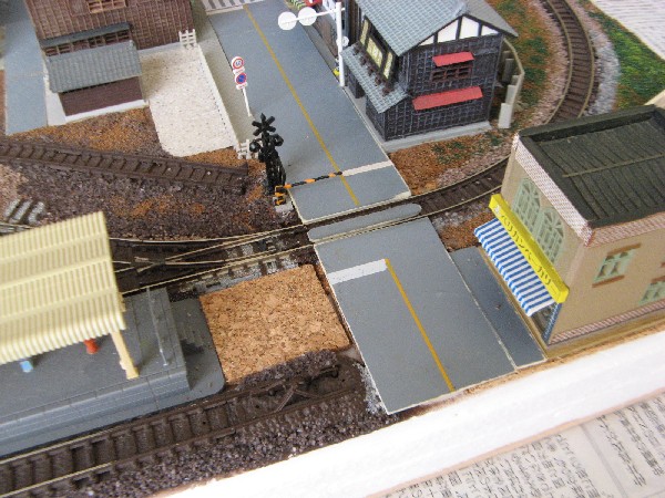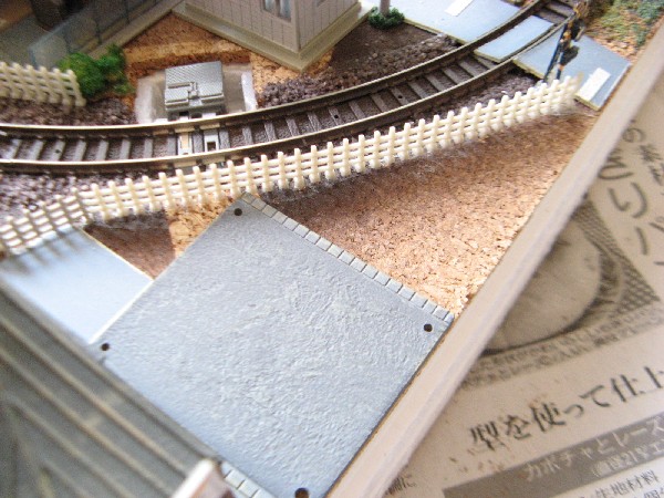 こちらの踏切は、警報機が河合商会製、遮断機は津川洋行製を使用します。また踏切とプラットホームの間の空き地も作業します。