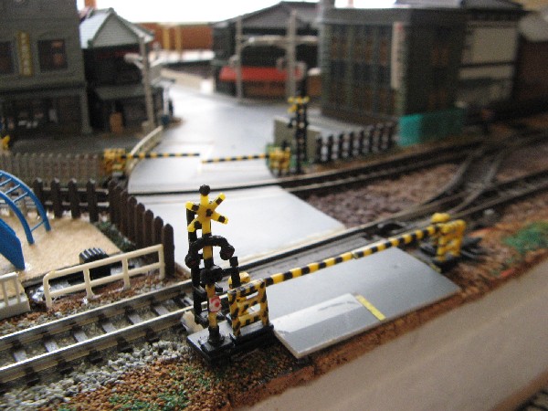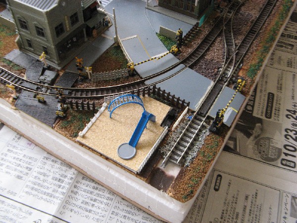 踏切には踏切板と警報機・遮断機を取り付けていきます。また、空き地は児童公園にしようと思っています。
