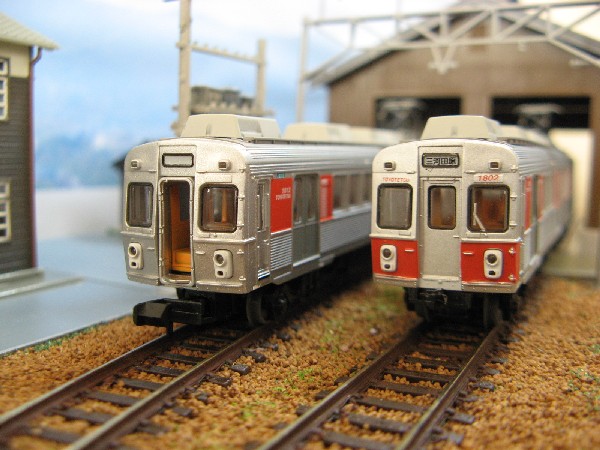 次は22000系との連結。この22000系は加工なしでTNカプラーを取り付けられたのに。