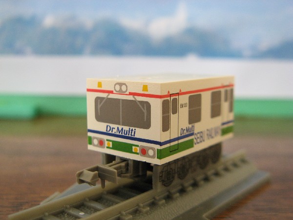 鉄道むすめの川越いぶきは車両から取り外すことが出来ます。車両は西武鉄道のDr.Multi(ドクターマルチ)、総合検測車です。