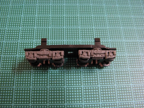 床板と台車が組み上がりました。やはり台車は床板と一体化されています。これではNゲージ化するときに、Nゲージ用の台車が取り付けられないのでどうするのだろうと思っていましたが・・・。